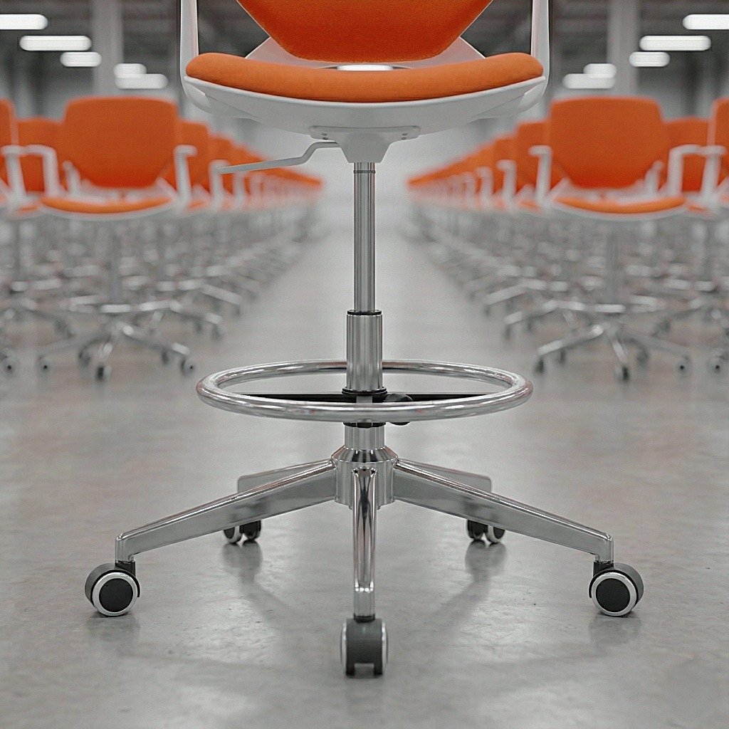Chrome Foot Ring & Base: Wipe the chrome drafting chair foot ring and 5-star base with a dry cloth to prevent smudges and maintain that “executive” shine. If used in a Lab Chair environment, ensure any chemical spills are wiped off immediately to prevent corrosion.