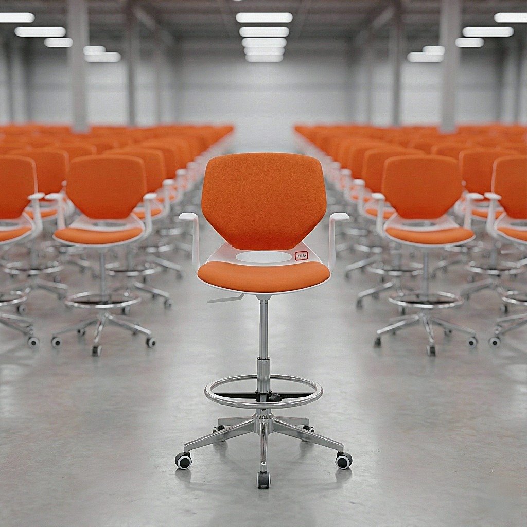 The 5918A adjustable height drafting chair Nairobi professionals prefer features a striking white frame drafting chair modern aesthetic paired with high-visibility orange upholstery. Unlike the standard black PU leather drafting chair, this model brings a burst of energy to any studio chairs environment or medical lab. This ergonomic drafting stool is equipped with a high-range drafting chair gas lift Nairobi technicians can rely on, allowing for a 5918A drafting chair 44-49 inch height adjustment to suit various counter levels.