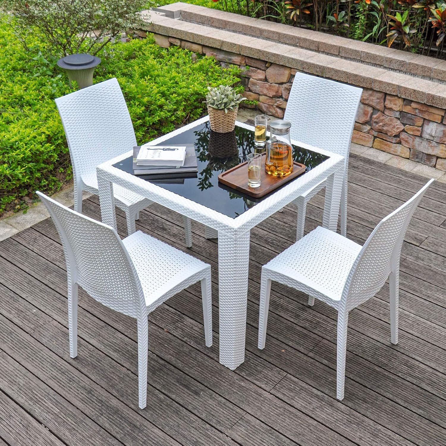 Redefine your outdoor gatherings with the grace and durability of this rattan garden furniture ensemble. Timeless, versatile, and built for the elements, the AONDO-76 Patio Dining Set (White) is more than just outdoor furniture—it’s an invitation to dine, relax, and make memories under the open sky.