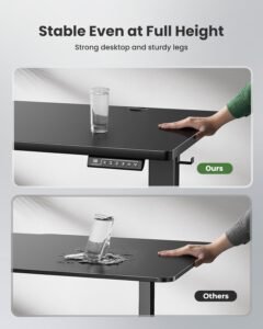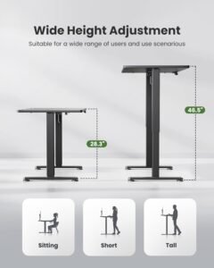 The desk’s sturdy frame ensures stability at any height, giving you the confidence to work comfortably without worrying about wobbling or shifting. Built to last, this desk is as functional as it is stylish, promising years of reliable use with minimal maintenance.