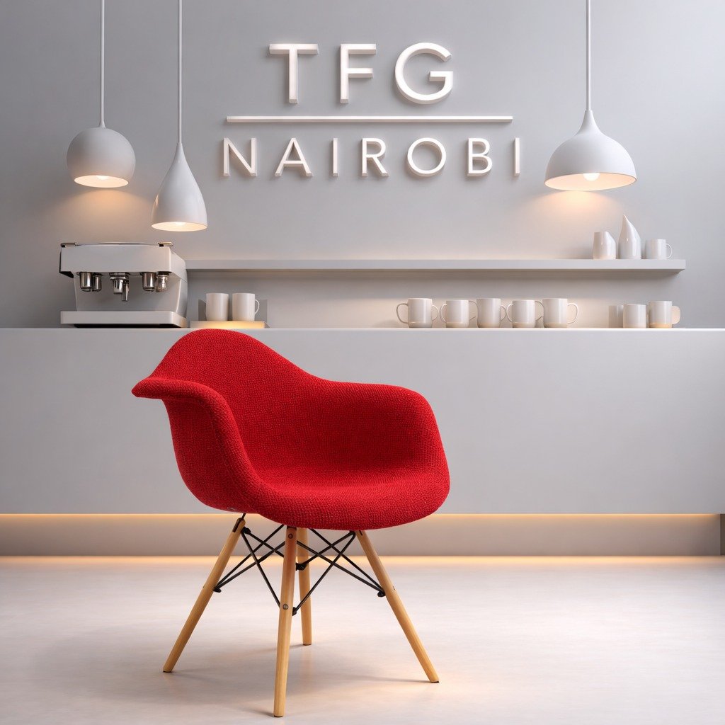 Buy the EO8418 Red Eames Fabric armchair at TFG Nairobi. Premium upholstered design, 12-month warranty, and same-day delivery in Nairobi. Shop now!