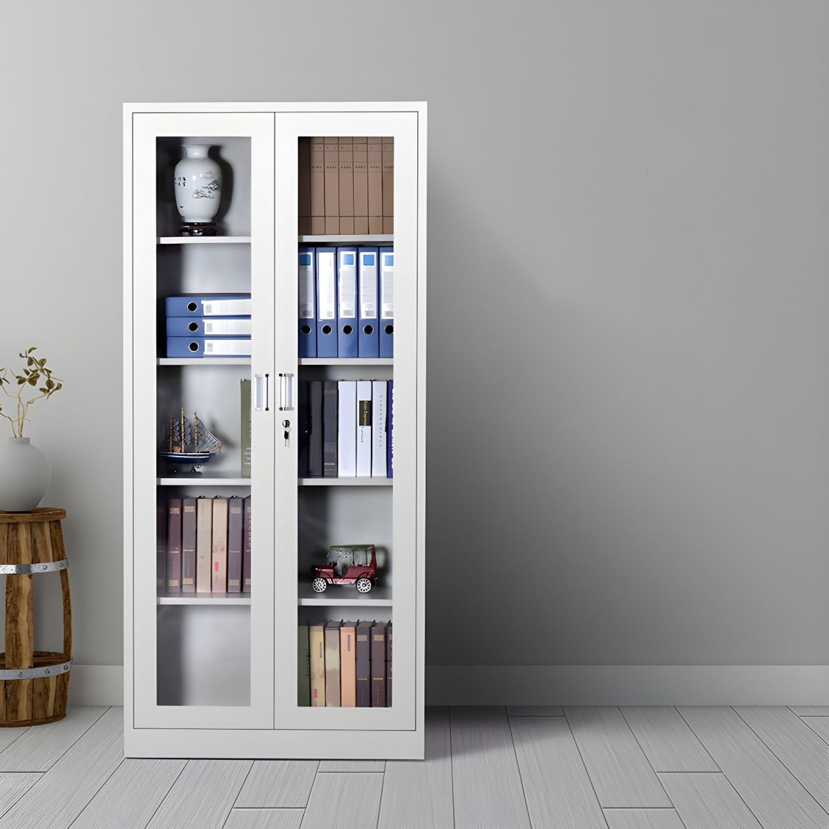 Say goodbye to clutter! The cabinet boasts four adjustable shelves that cater to your unique storage needs. Whether it’s files, office supplies, or decorative items, you can customize the shelves to accommodate items of varying sizes. The glass front adds a modern touch while providing a clear view of your stored items, making organization effortless and stylish.