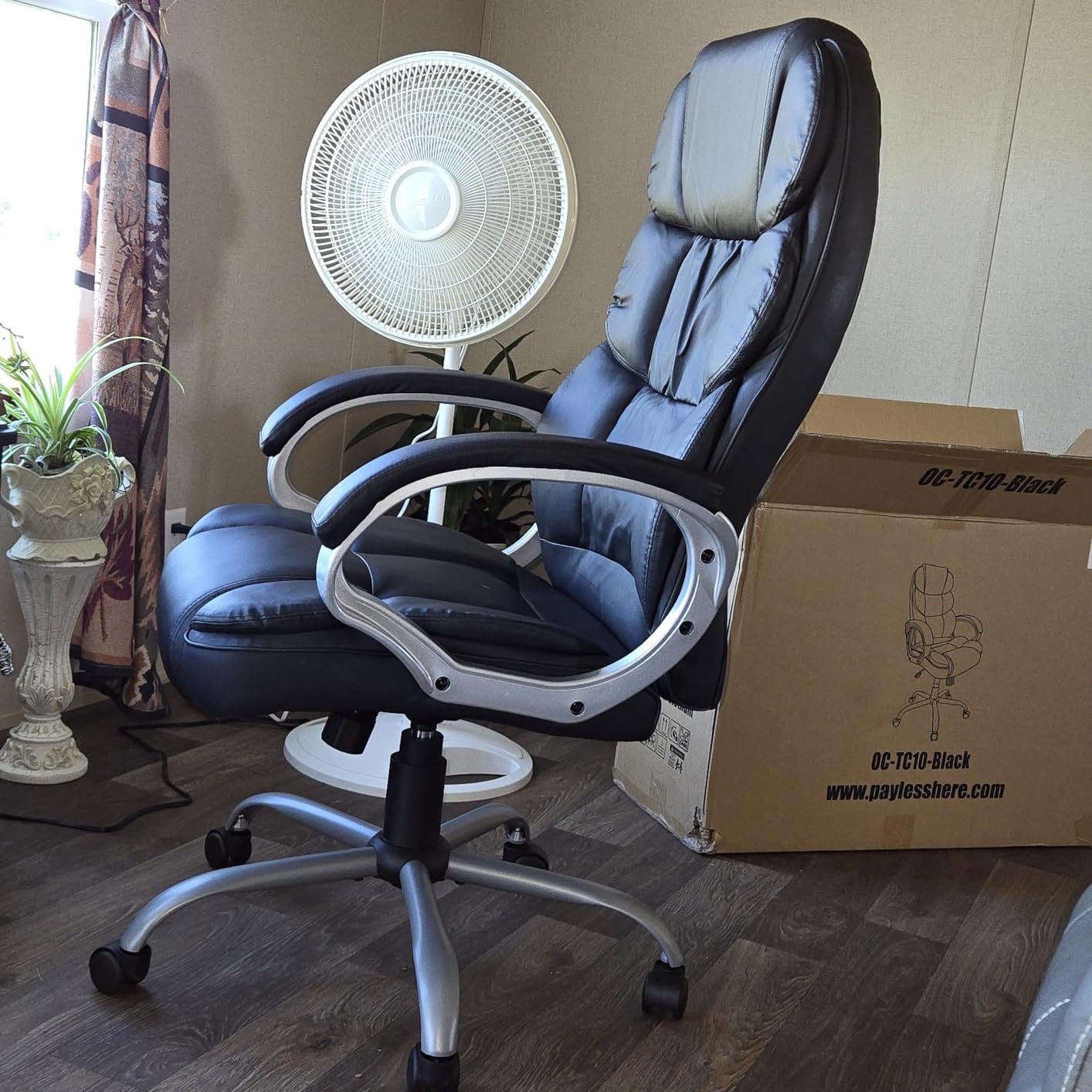 Crafted from durable PU leather, the chair’s luxurious black finish is not only stylish but also easy to maintain, ensuring it retains its pristine look over time. The smooth leather surface offers a premium feel, while the high-back design provides comprehensive support for long hours at your desk. Whether you’re brainstorming your next big idea or tackling your daily tasks, this chair has your back—literally.