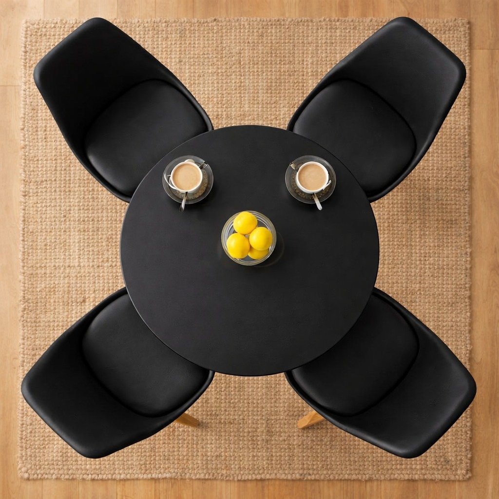 The centerpiece of this set is the round Scandinavian table, crafted to make a statement in any room. Its clean lines and minimalist design radiate sophistication, while the smooth, black finish adds depth and a touch of luxury. Whether you’re hosting a dinner party or enjoying a quiet family meal, this table provides an inviting atmosphere that brings people together with ease.