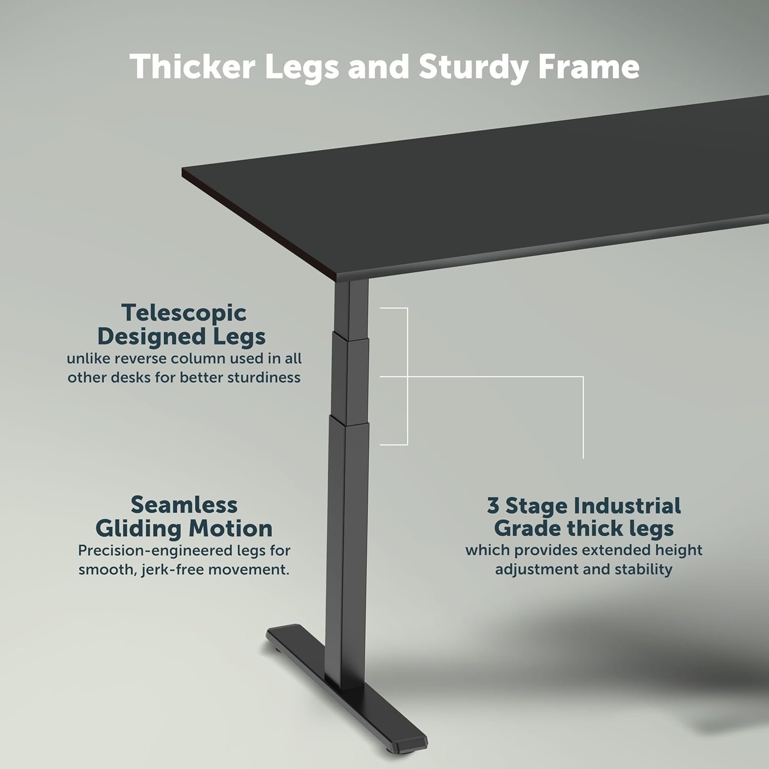 Precision Engineering: The JHT8-ED3 offers a seamless transition from a sitting height to a full stand up desk position, allowing you to stay active without interrupting your workflow.