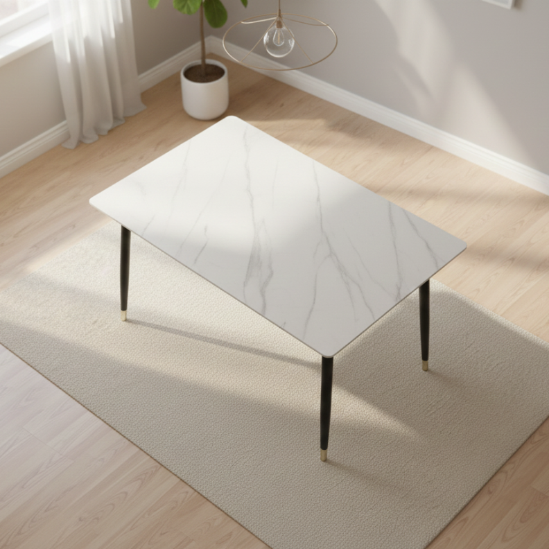 How do the black metal legs support the weight of the marble? The black metal leg dining table framing is engineered from high-grade reinforced steel. It is designed to provide maximum stability for the marble slab while maintaining a slim, modern aesthetic.