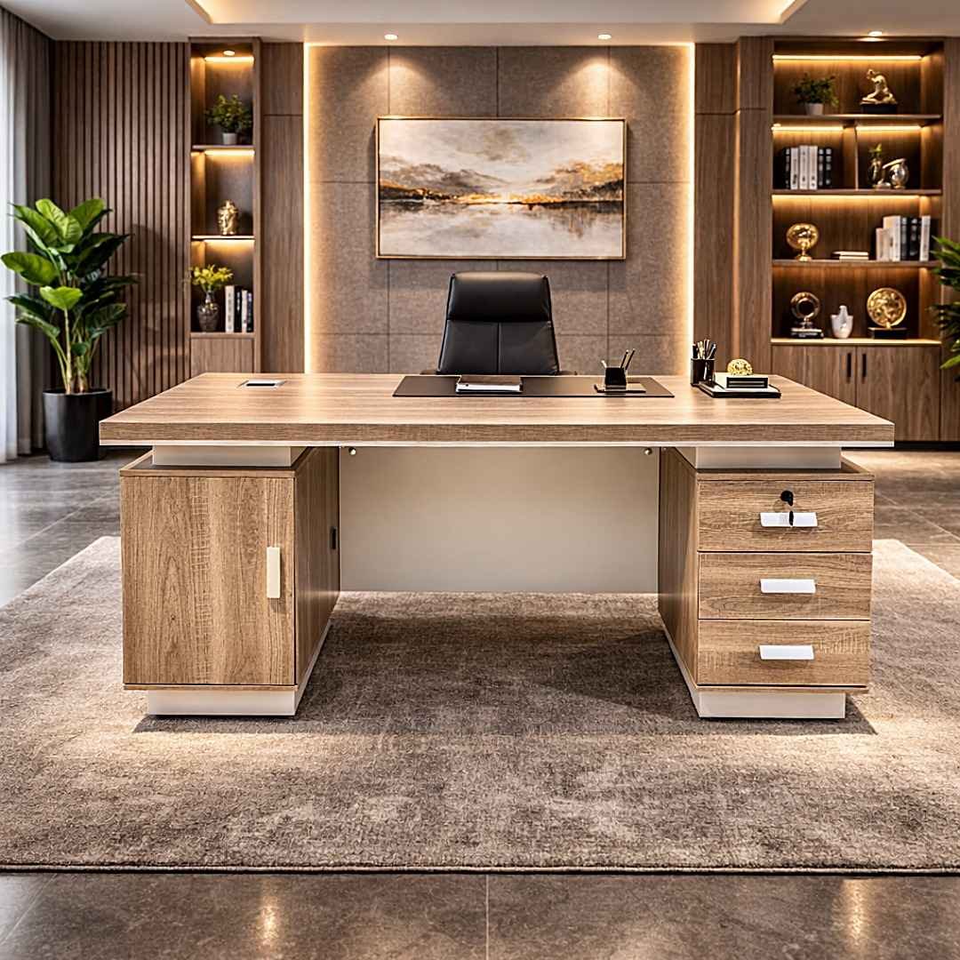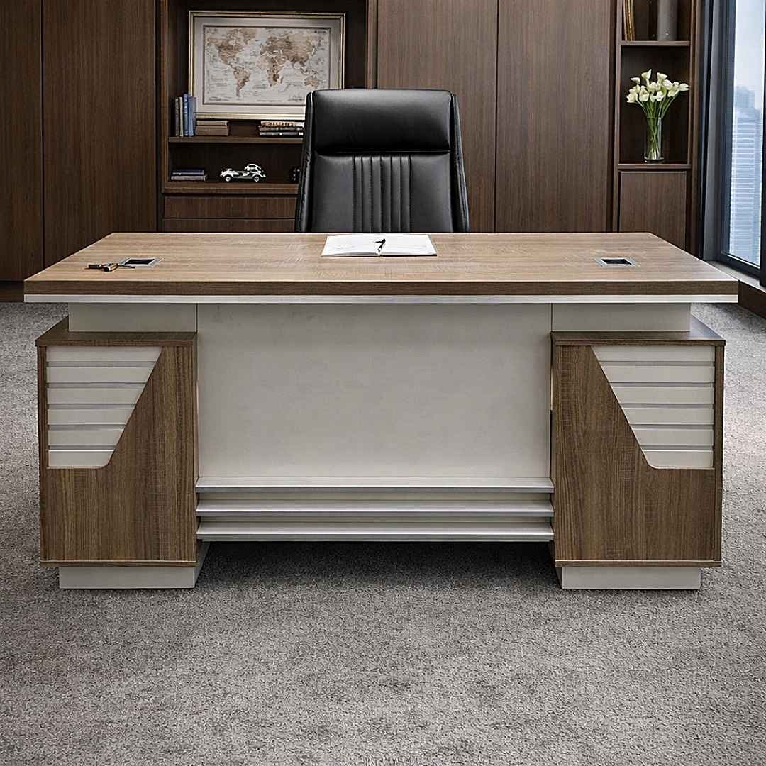 Smart Storage Solutions: The JNRD116 luxury executive desk with drawers includes integrated, lockable storage to keep your confidential documents secure.