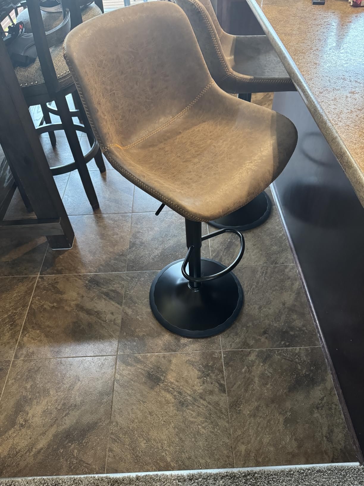I’m really happy with these bar stools! They look modern and elegant — the brown PU leather gives a nice upscale touch that fits perfectly with my kitchen island. The swivel function is super smooth, and the height adjustment makes it easy to use whether I’m sitting for breakfast or entertaining guests at the counter.