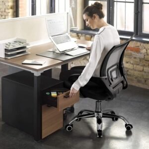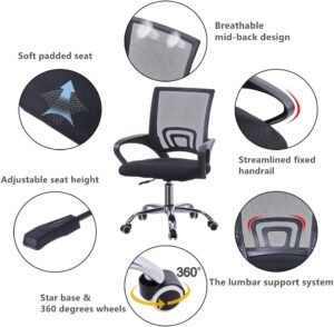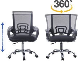 The chair’s 360-degree swivel capability allows for ease of movement, giving you the freedom to glide between tasks and reach different areas of your desk effortlessly. It is designed with an adjustable height feature to suit your personal preference, ensuring your feet rest comfortably on the ground or footrest while maintaining proper alignment with your desk. This adjustability makes it versatile enough to fit seamlessly into a variety of office setups, from compact home workstations to larger corporate spaces.