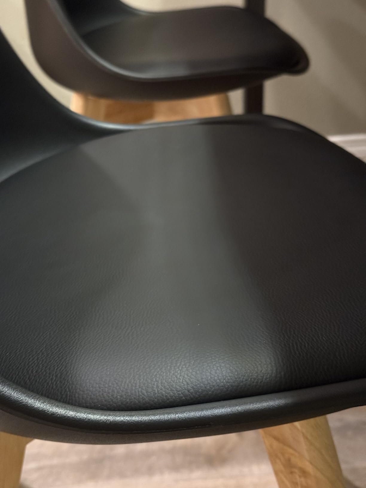 The design is modern and minimal, with a clean silhouette that fits perfectly in our kitchen and dining area. They’re surprisingly comfortable for daily use — the seat has just enough give, and the backrest offers decent support even during longer meals or gatherings.