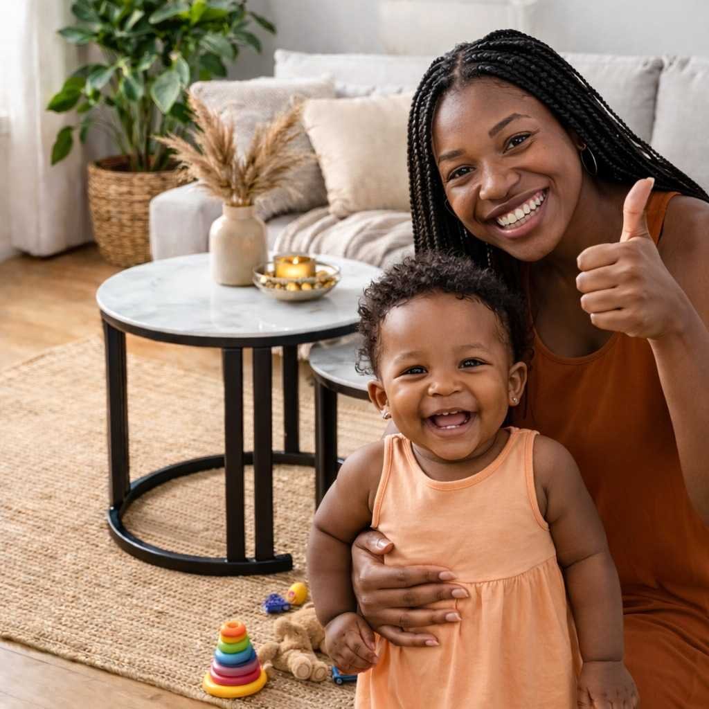 Dusting: The black metallic frame nesting tables feature a matte/semi-gloss finish that can show dust. A quick wipe with a dry cloth once a week keeps the “industrial chic” look sharp.